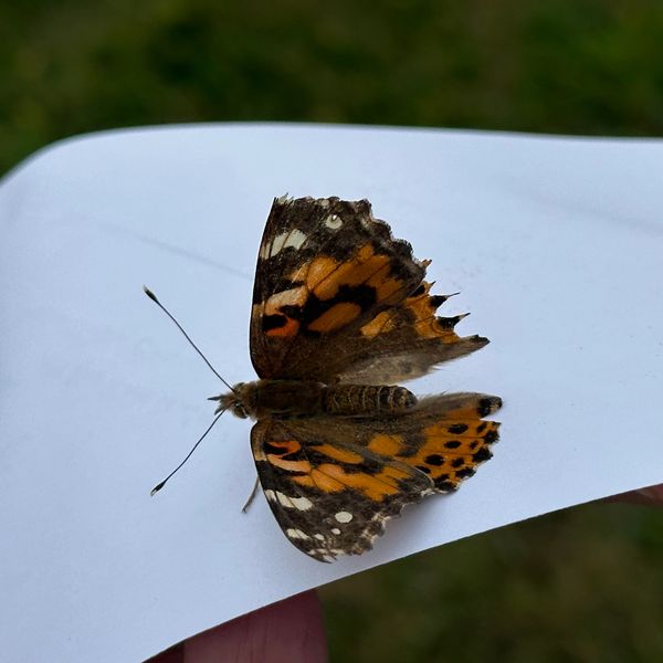 It was interesting to look around and observe the different behavior of the butterflies. Some immediately spread their wings and took flight. Others seemed more hesitant. When I opened my container, I saw the little creature unfold its wings, and I expected to see it launch itself into the air. Instead, it simply sat and then moved its wings back to a side-by-side position above its back. And then it sat some more. And some more.